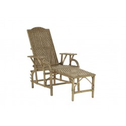 Structure en rotin naturel non écorcé, tressage en éclisse de rotin, vernis transparent satiné, ou patiné à l'ancienne, au choix. Crémaillère, attaches de repose pied, et axe du dossier en laiton.