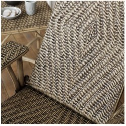 Notez au passage les deux confortables accoudoirs, et le magnifique travail de tissage en motif "chevrons", entièrement fait main. La chaise longue en rotin naturel "grand-mère" est présentée ici dans sa version sans coussin. Coussin assorti disponible en complément.